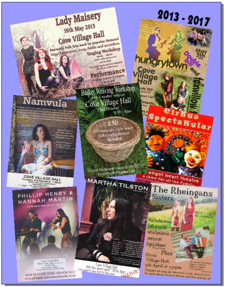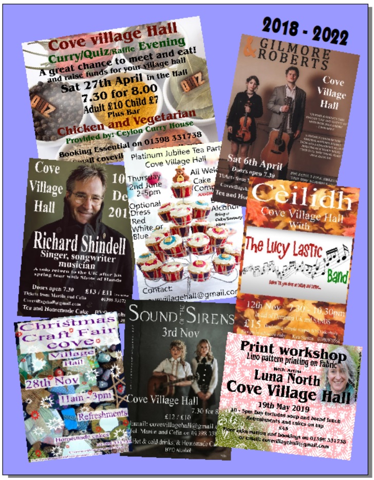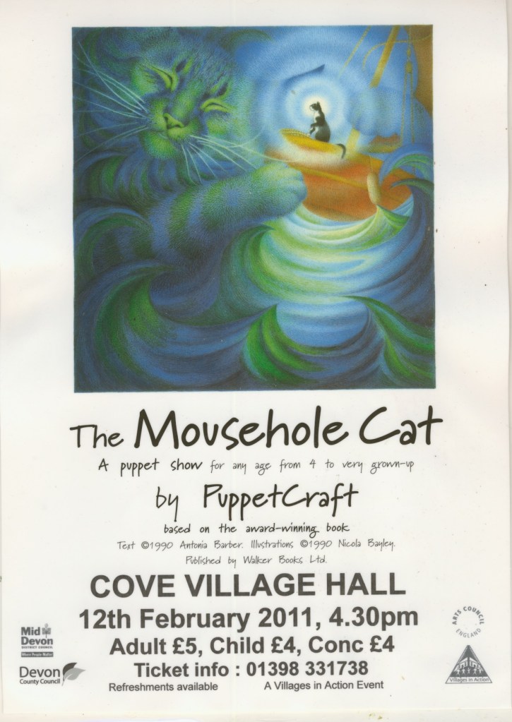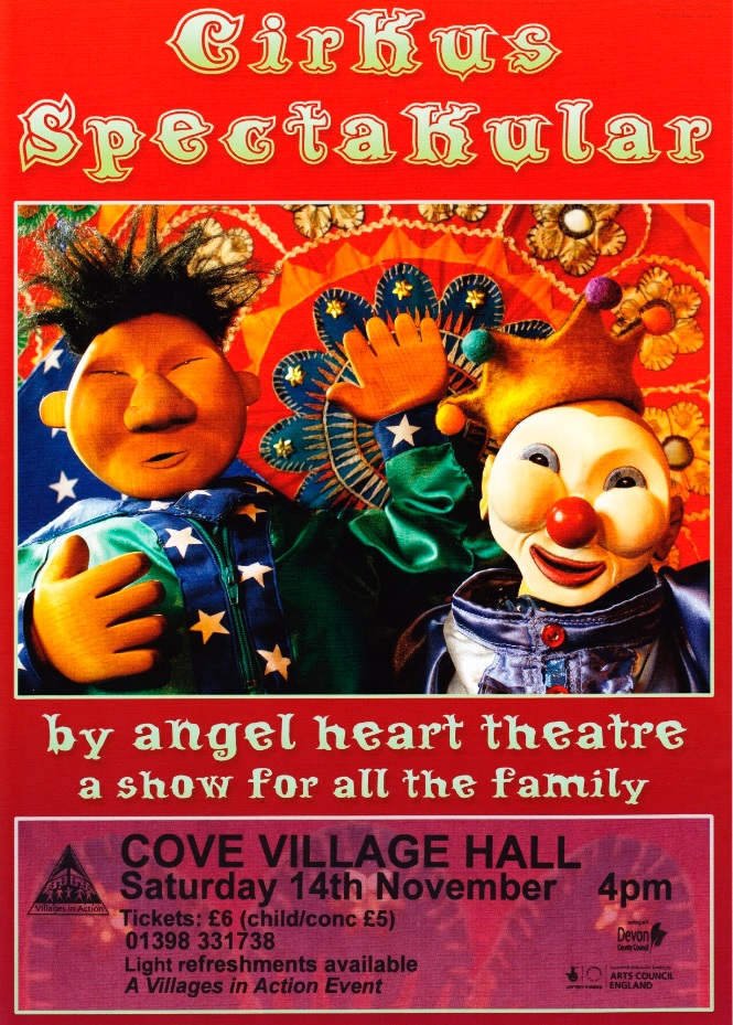 Cove village hall near Bampton Devon, has had some great events over the years including these puppet shows and music gigs.